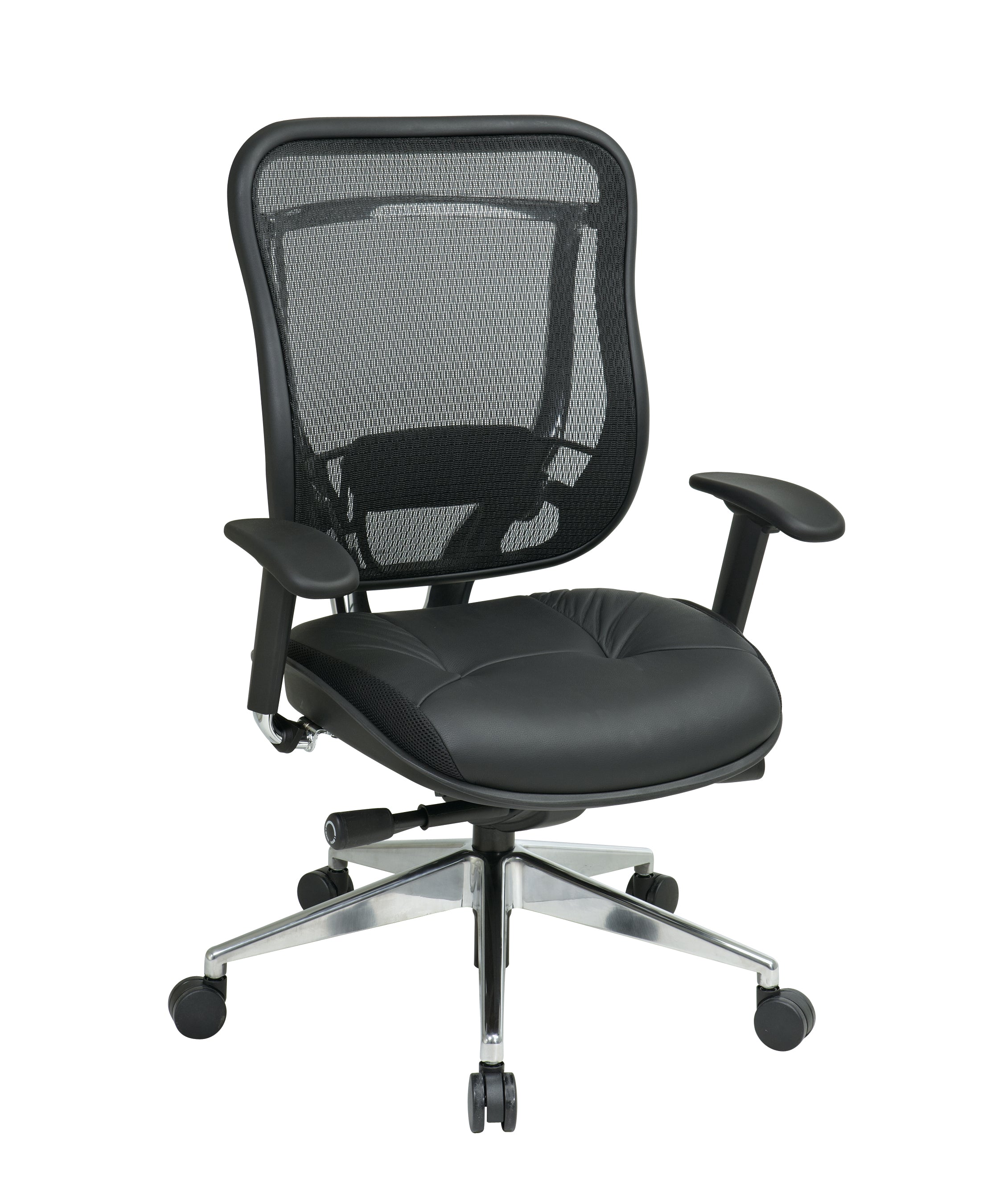 Leather seat with mesh back for the perfect balance of comfort and breathability